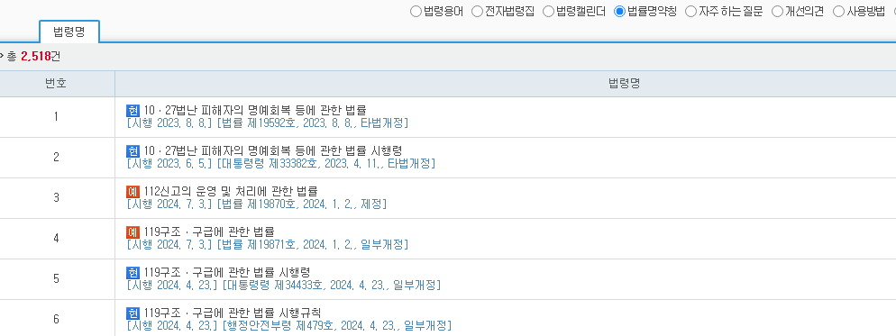 이렇게 하면 법령의 일부 내용이나 특정 조항에 대한 정보를 통해 원하는 법령을 찾는 것이 가능하답니다.