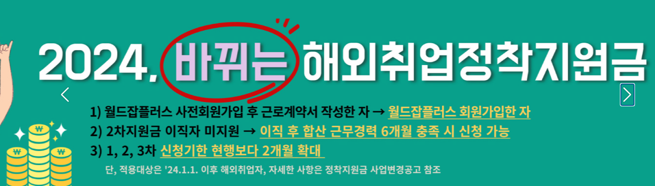 🔽 월드잡 플러스 해외취업정착지원금 공고문 🔽