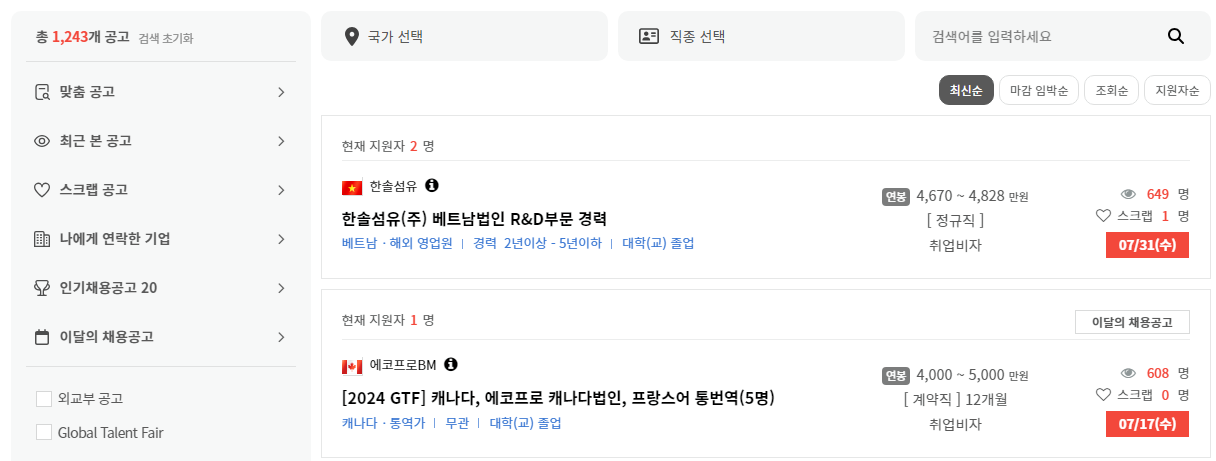 해외취업 및 공고, 교육, 설명회 및 박람회 등 다양한 해외 채용 정보를 월드잡 플러스 사이트에서 온라인으로 간편하게 확인할 수 있습니다.