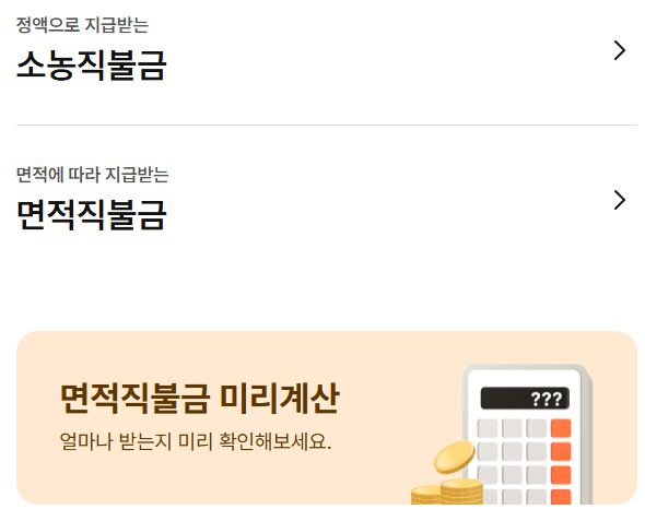 소농직불금은 일정 요건을 충족하면 고정 금액이 지급되는 방식입니다.