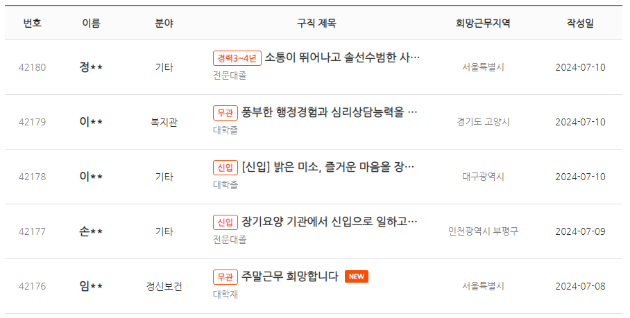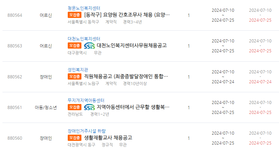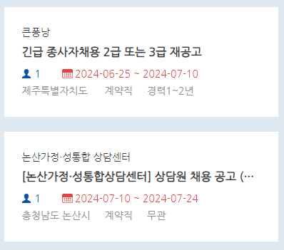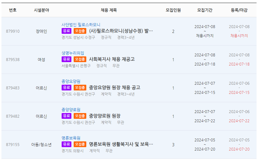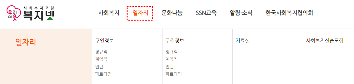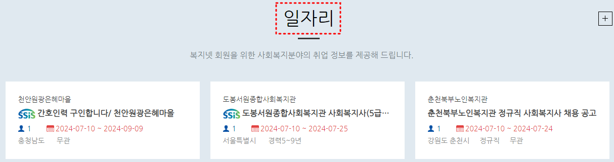 복지넷 구인구직 예시