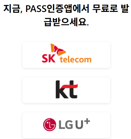 구글 플레이스토어 또는 앱스토어에서 본인 통신사에 맞는 PASS 앱을 검색해야 합니다.