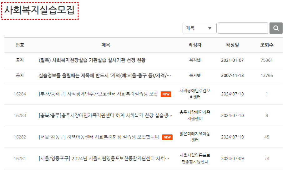 또한 다양한 장애인보호센터 및 지역아동센터에서 사회복지 실습을 원하는 이들을 위해 공고문도 찾아볼 수 있으니 관심이 있으시다면 직접 복지넷 홈페이지에서 확인하는 것이 좋습니다.