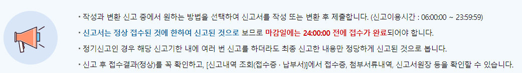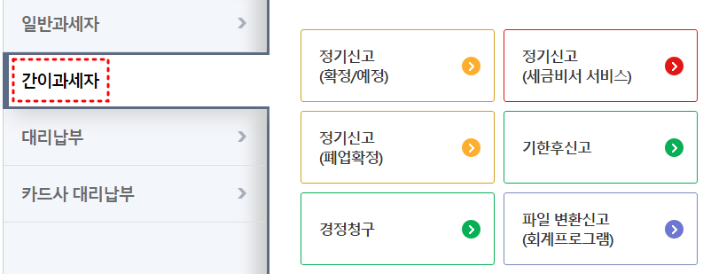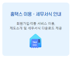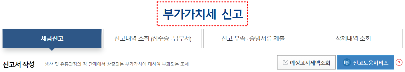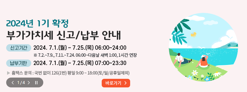 신고기간인 1월 또는 7월이 되면 부가가치세 신고 혼잡 기간으로 홈택스 메인 페이지가 바뀌어서 신고하기에 용이할 수 있습니다.