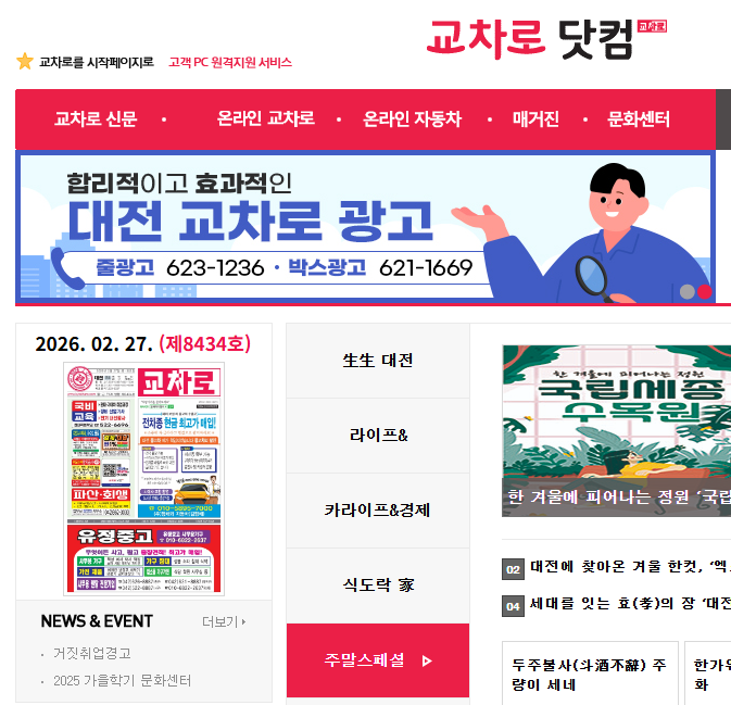 대전 교차로 신문그대로보기는 발행 일정에 맞춰 최신 호수가 정기적으로 업로드됩니다.