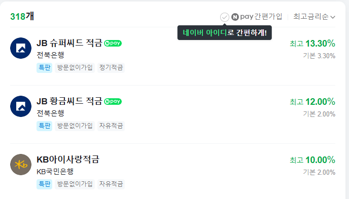 네이버페이는 다양한 금융 상품들을 한눈에 비교할 수 있는 플랫폼을 제공하고 있어요.
