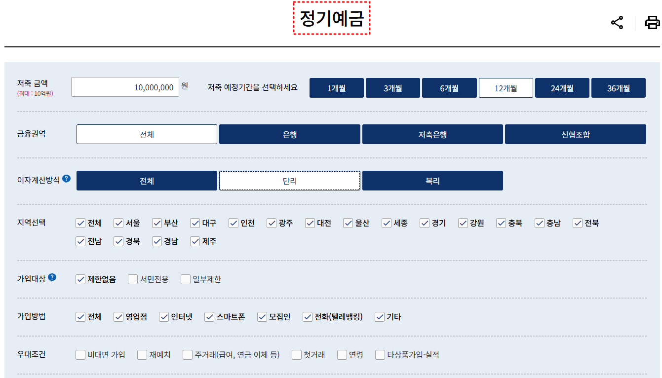 특정 조건에 맞는 예금 상품을 찾고자 할 때 필터링 옵션이 제한적이므로, 세부적인 조건을 따로 확인하는 데 시간이 걸릴 수 있어요.