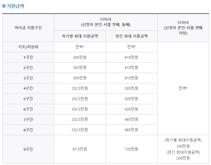 9구간에 해당하는 첫째와 둘째 자녀는 연간 135만 원을 지원받게 되며 이러한 정부 지원금은 학생들에게 큰 금융 혜택으로 작용합니다.