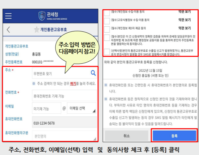 주민등록번호와는 달리 정보 유출의 위험을 줄여주며, 개인 정보의 안전성을 높여주기 때문에 많은 소비자들이 개인통관고유부호를 이용하고 있어요.