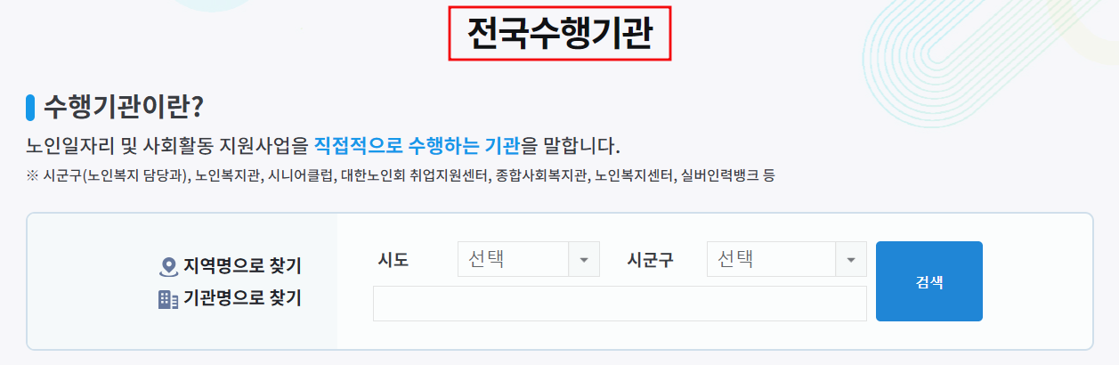 노인일자리 신청자격 및 방법과 관련하여 문의 사항이 있을 때, 노인일자리 사업을 위해서 업무를 수행하고 있는 전국의 기관들을 검색해볼 수 있습니다.
