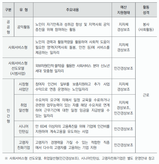 노인일자리 사업유형