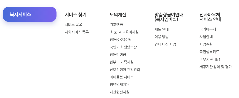 여러가지 복지 서비스 뿐만 아니라 기초연금, 국민기초 생활보장 등과 관련된 모의계산도 할 수 있고, 자신에게 해당하는 복지 서비스를 온라인신청할 수도 있습니다.