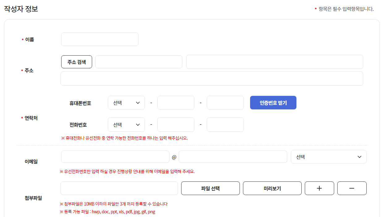 개인정보는 신청자의 민원 사무처리, 진행 상태 확인, 결과 통보 등을 위해 사용되며, 민원 접수 기관과 처리 기관에서 이를 이용해요. 이를 통해 필요한 지원이 신속하게 이루어질 수 있도록 하는 것이죠.
