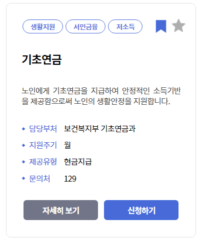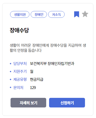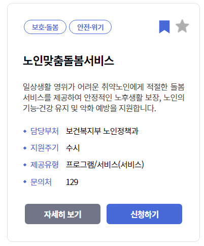원하는 복지 서비스를 찾았다면 해당 서비스를 선택해서 이동하게 되면, 신청 조건 및 내용과 방법을 자세히 알아볼 수 있으니, 직접 복지로 홈페이지를 접속해서 이용해 보시면 좋습니다.