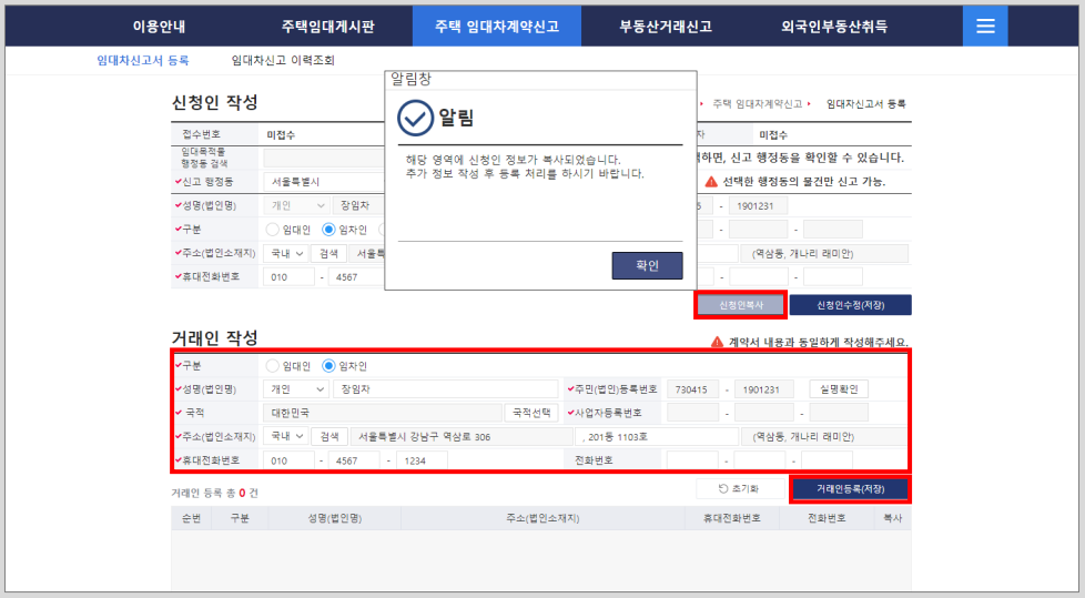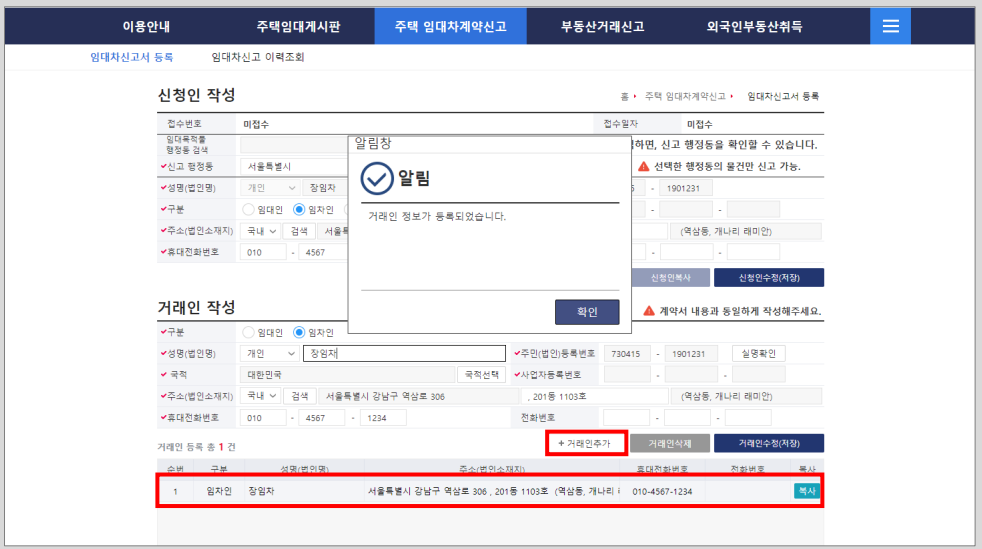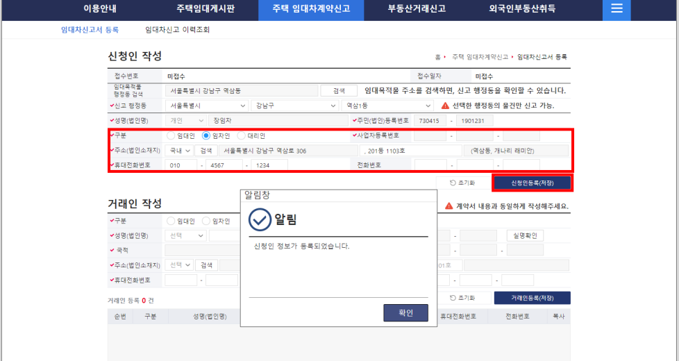 임대차 신고가 접수상태이거나 확인 요청 상태일 경우, 신청인이 직접 삭제할 수 있어요.