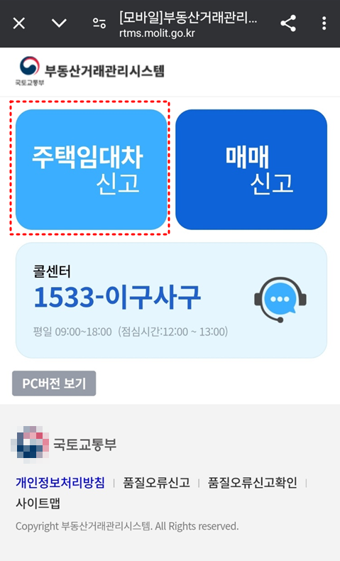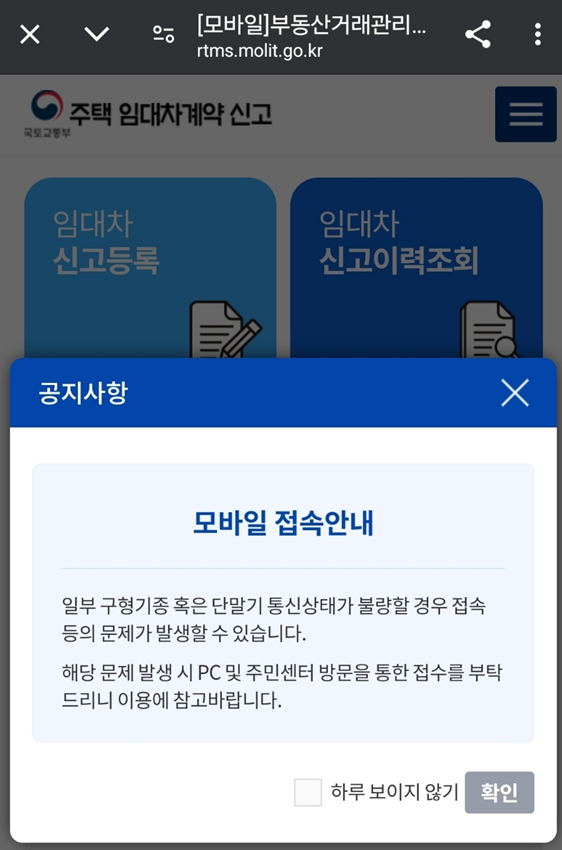스마트폰에 있는 브라우저를 통해 주택임대차계약 신고를 검색하거나 rtms.molit.go.kr 주소를 직접 입력하여 모바일 버전으로 접속할 수 있습니다.