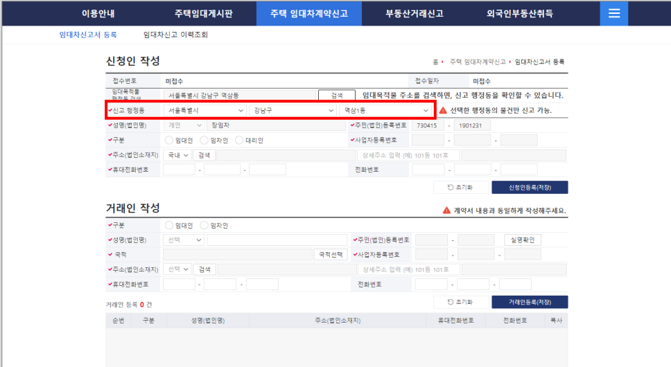 임대차 계약서 작성 이전이라도 임대료, 임대기간, 주택 등이 확정되었다면, (가)계약금 입금일을 기준으로 30일 이내에 신고해야 합니다. 신고기한을 초과할 경우, 과태료 부과 대상이 될 수 있으므로 반드시 기한 내에 신고를 완료해야 해요.