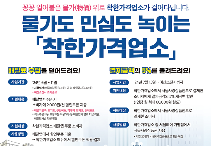 서울시는 착한가격업소를 통해 배달료 부담을 덜어주는 특별한 혜택을 제공하고 있어요.