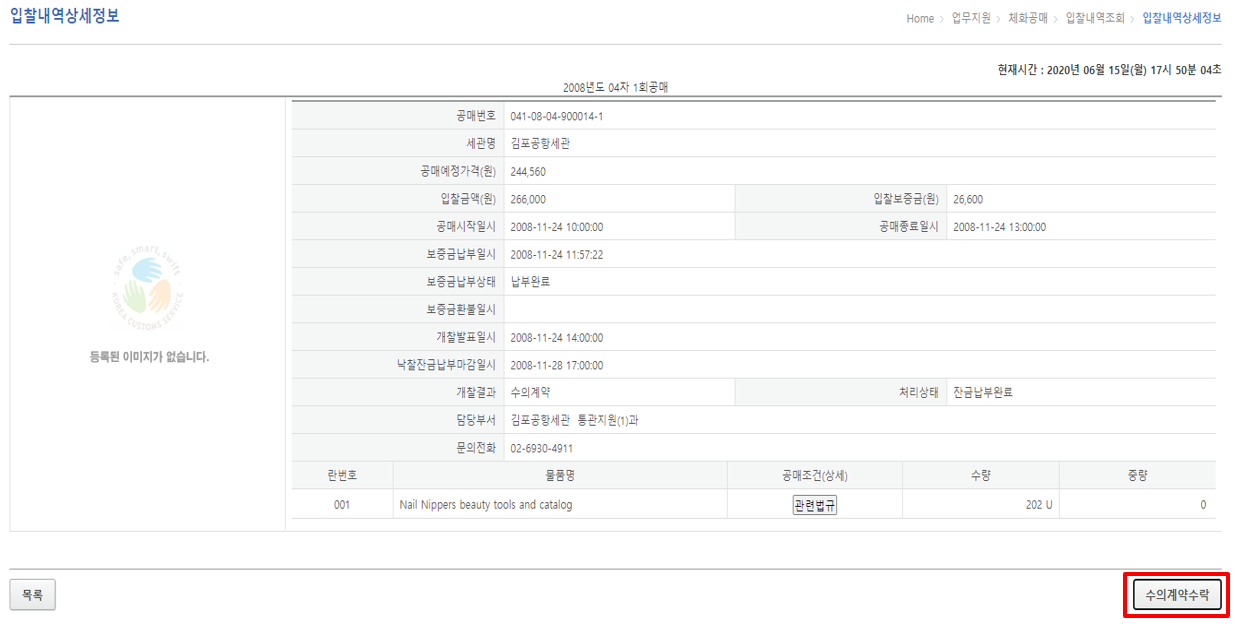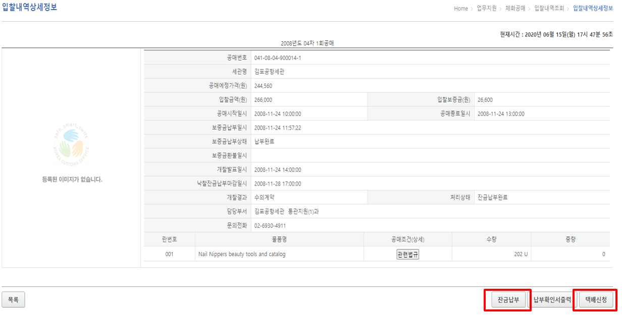낙찰된 물품은 세관에서 지정한 절차에 따라 검사하고, 조건을 만족해야만 최종적으로 물품을 인수받을 수 있어요. 만약 이 과정에서 조건을 이행하지 못하거나 문제가 발생하면, 낙찰은 무효가 될 수 있어요.