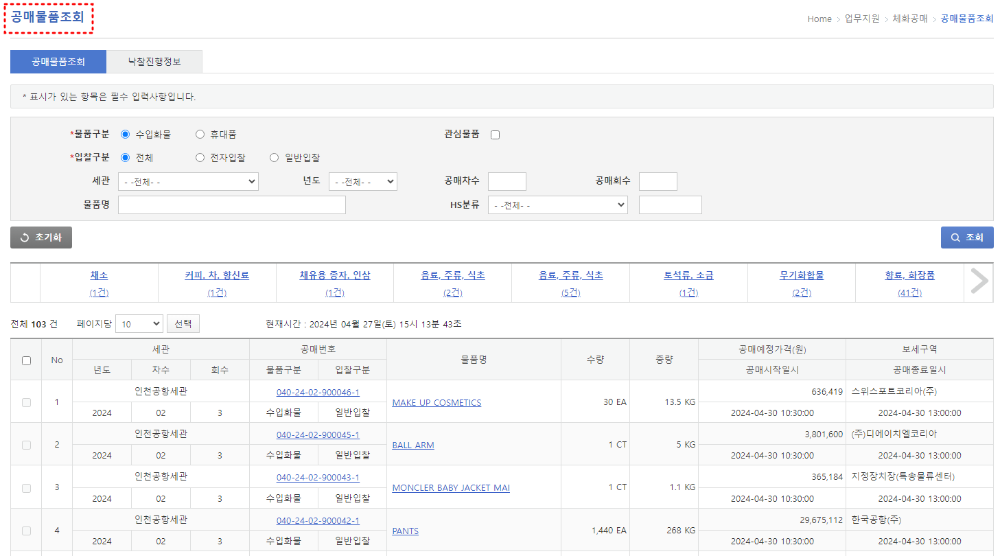세관공매 조회방법