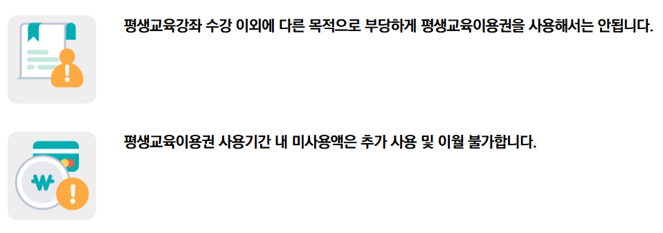 평생교육 바우처는 지정된 사용기관에서만 사용할 수 있어요.