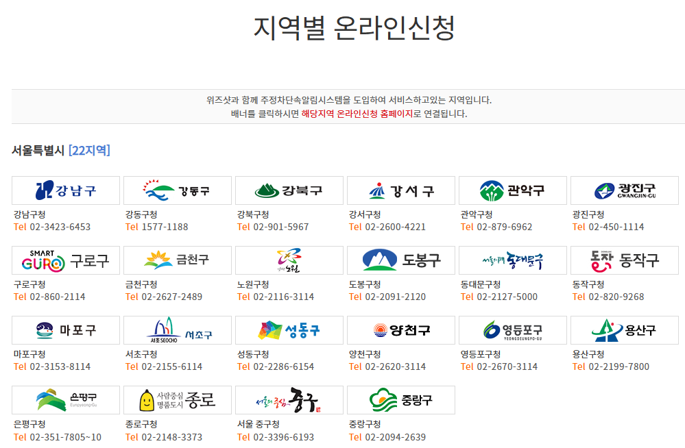 서울시 일부 자치구는 ‘통합주정차단속알림-휘슬’ 앱을 통해 간단히 가입할 수 있습니다.