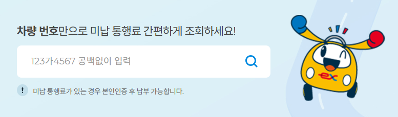 여기서 미납통행료 조회와 함께 납부까지 바로 진행할 수 있어 편리합니다.