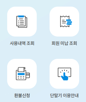 또한 미납 내역뿐 아니라 이용 내역, 환불 신청도 가능해 종합 관리가 가능합니다.