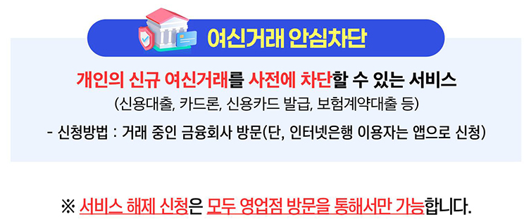 이 서비스는 신규 융자과 카드 발급을 막아, 명의 도용 피해를 사전에 차단하는 효과가 있습니다.