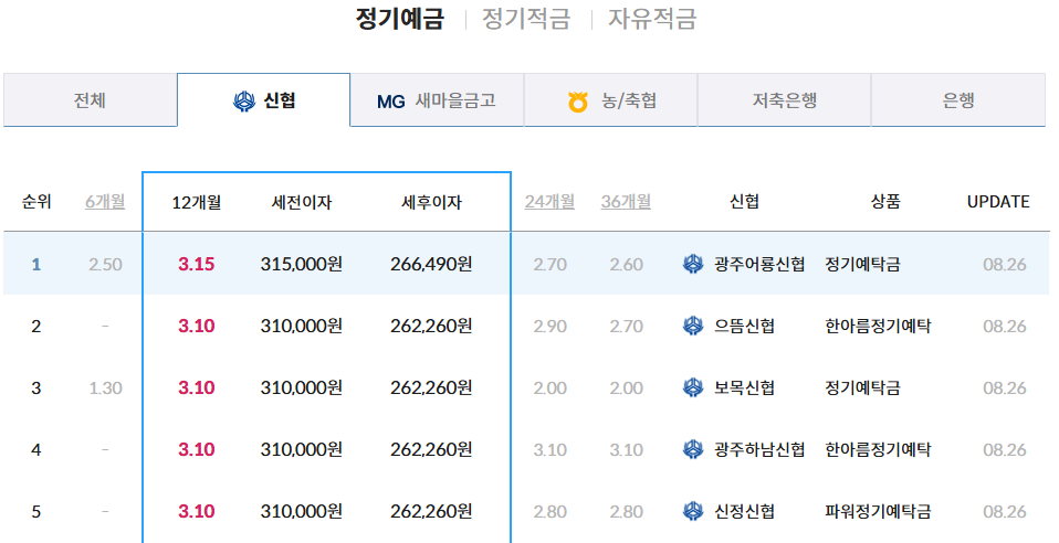 신협 정기예금 금리비교 이율 높은곳 쉽게 확인하기