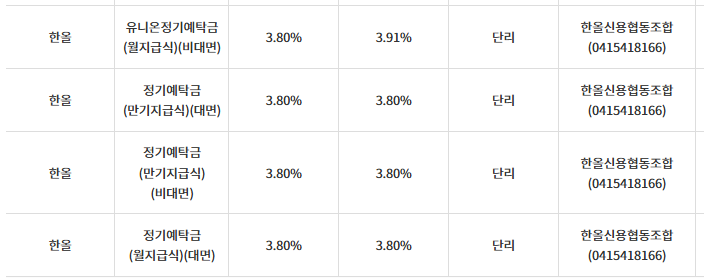 이곳에서는 조합별 정기예금 기본금리와 우대금리를 한눈에 볼 수 있습니다.